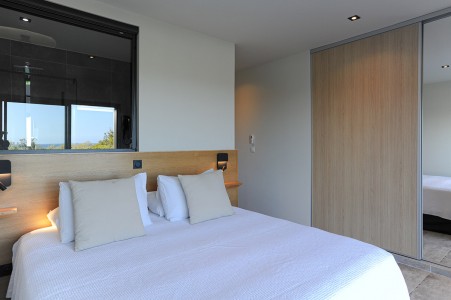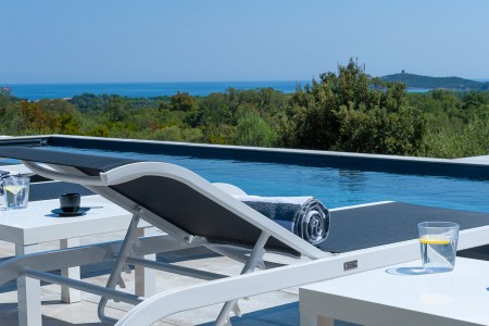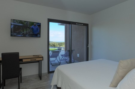 • 5 chambres avec leur salle d'eau et wc, dont 4 avec vue mer et la dernière vue sur le maquis sans vis-à-vis.