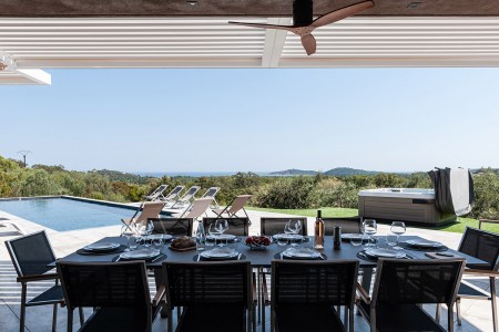 • Un jacuzzi avec vue mer aussi près de l'espace de vie pour des moments de détente et convivialité.