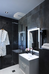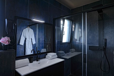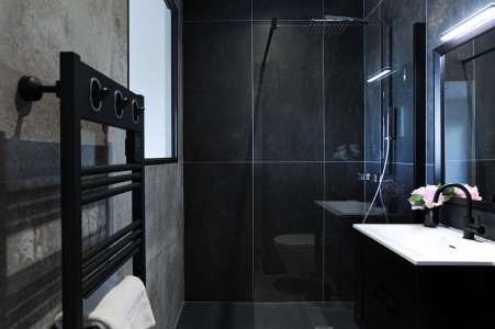 Un hammam avec salle de douches est attenant à la salle de sport.