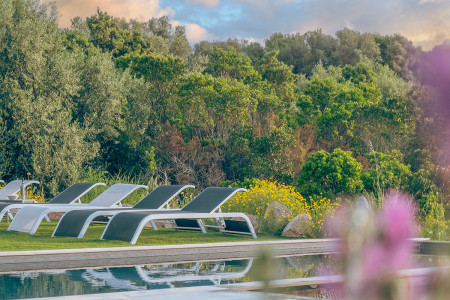 • Une situation au calme sur les hauteurs, au bout du petit hameau typique de Poggioli à Pinarello.
