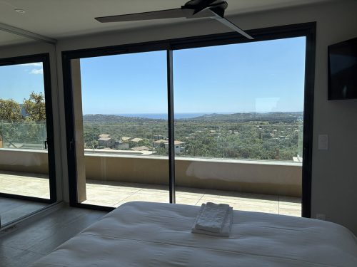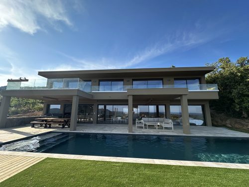 Avec une position privilégiée sur les hauteurs, cette villa vous assure un cadre calme et préservé, et offre une large vue mer depuis la terrasse avec piscine, la pièce à vivre et les chambres.