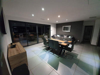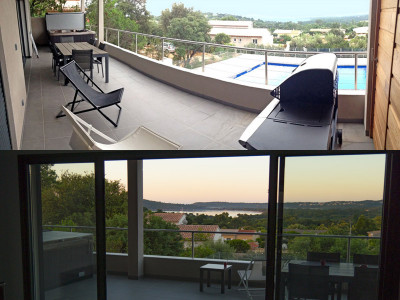 - Terrasse couverte 36 m2, vue sur Pinarello et sur la piscine, jacuzzi, barbecue à gaz, table, chaises et transats